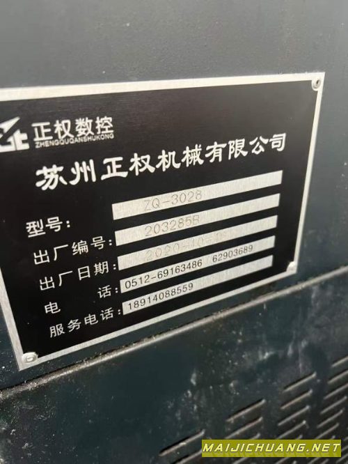 苏州正权3028数控龙门,工作台2100/3000,门宽2800mm,过门高1400mm,导轨两线一硬,X/Y/Z行程:3000/2800/1000mm,BT50主轴6000转,主轴油冷,带中心出水。法纳克MF-plus系统。
